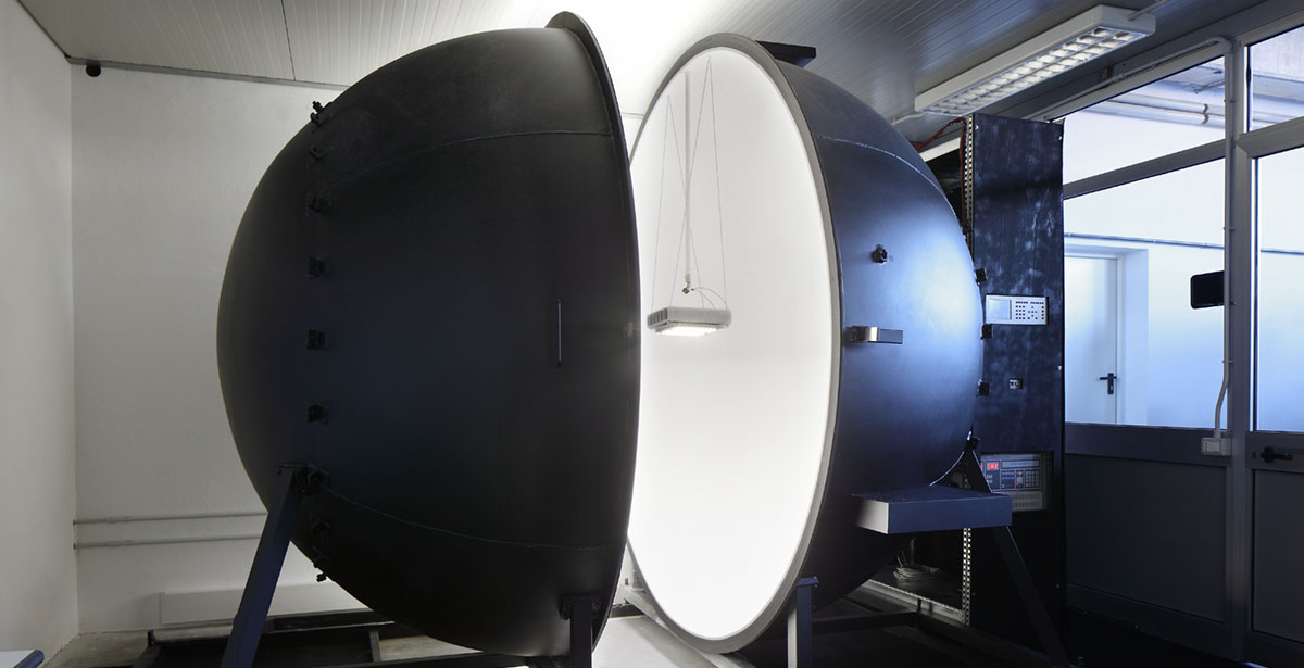 It’s a performance test on light fixtures and light sources. This is where the performance of lamps and LED modules (decay of the luminous flux, efficacy and colour characteristics) is tested. The room housing the spectroradiometer, where the colorimetric characteristics of light sources can be identified, is air conditioned, but without temperature control.