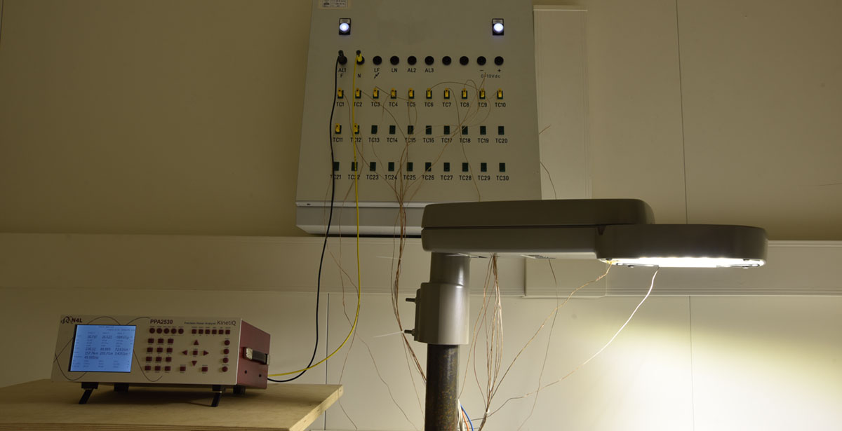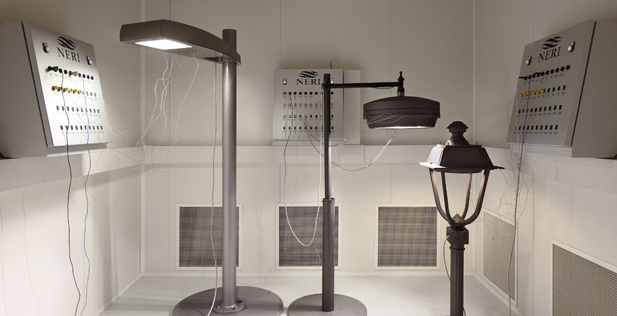 It's a performance test on light fixtures and light sources: decay of the luminous flux, efficacy and colour characteristics. The room is air conditioned, but without temperature control. In particular, this test is done to assess and measure lamps aging. For this test the reference standard is the EN 13032-1.